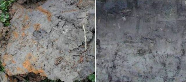 Las consecuencias de estos procesos afectan a la movilidad de los compuestos de hierro y manganeso del suelo. En los periodos con el suelo saturado el agua, si no circula y se renueva, pierde progresivamente su contenido en oxígeno bajo la acción de los microorganismos. En esta situación, el hierro y el manganeso pueden pasar a formas reducidas solubles que fácilmente pueden movilizarse y, en algunos casos, ser eliminadas del suelo. Al perder estos constituyentes cromáticos, la matriz del suelo se decolora y muestra colores grisáceos y azulados. En aquellos Aquents sin saturación permanente en algunos horizontes superficiales (la situación más habitual en el territorio estudiado) los compuestos de hierro y manganeso solubles son oxidados y precipitan en los poros y en las superficies de los canales. En estos casos, la matriz del suelo se muestra salpicada con moteados rojizos y ocres.