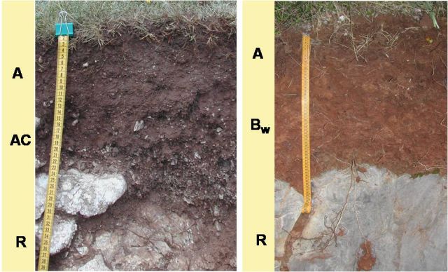 En la zona de estudio se han encontrado dos Grupos de Udepts: Eutrudepts y Dystrudepts. Los primeros caracterizados por la presencia de carbonatos libres o bien por una saturación en bases elevada en horizontes no muy profundos. En estos suelos existe una fuente de cationes básicos que equilibra las pérdidas asociadas al régimen climático. Los Dystrudepts tienen una amplia representación en el sector oriental de Asturias. Son suelos ácidos muy típicos en zonas de régimen de humedad údico, formados sobre sedimentos débil o moderadamente consolidados o sobre rocas de caliza, lutita, arenisca, entre otros materiales. Estos suelos presentan ausencia de carbonatos libres y una saturación en bases relativamente baja. En consecuencia, son más ácidos y tienen menor fertilidad.